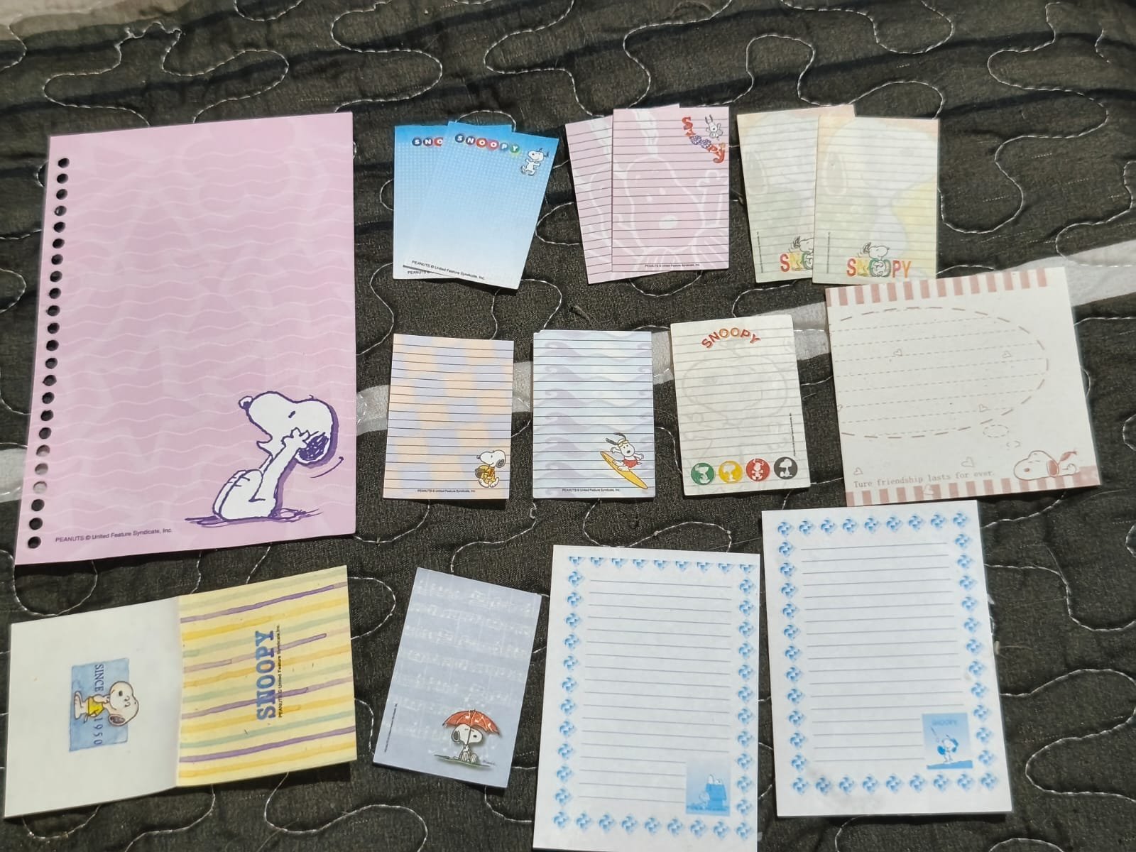 Hermoso set de papelería con diseños de Snoopy. Incluye hojas de notas, papeles decorativos y tarjetas pequeñas en variados estilos y colores. Ideal para cartas, mensajes especiales, organización y coleccionistas. Los diseños incluyen detalles y personajes de Snoopy que alegrarán tu escritorio o correspondencia. ¡Perfecto para regalar o usar en tu día a día! Contiene: 6 Hojas grandes 5 Hojas medianas 10 Hojas mini