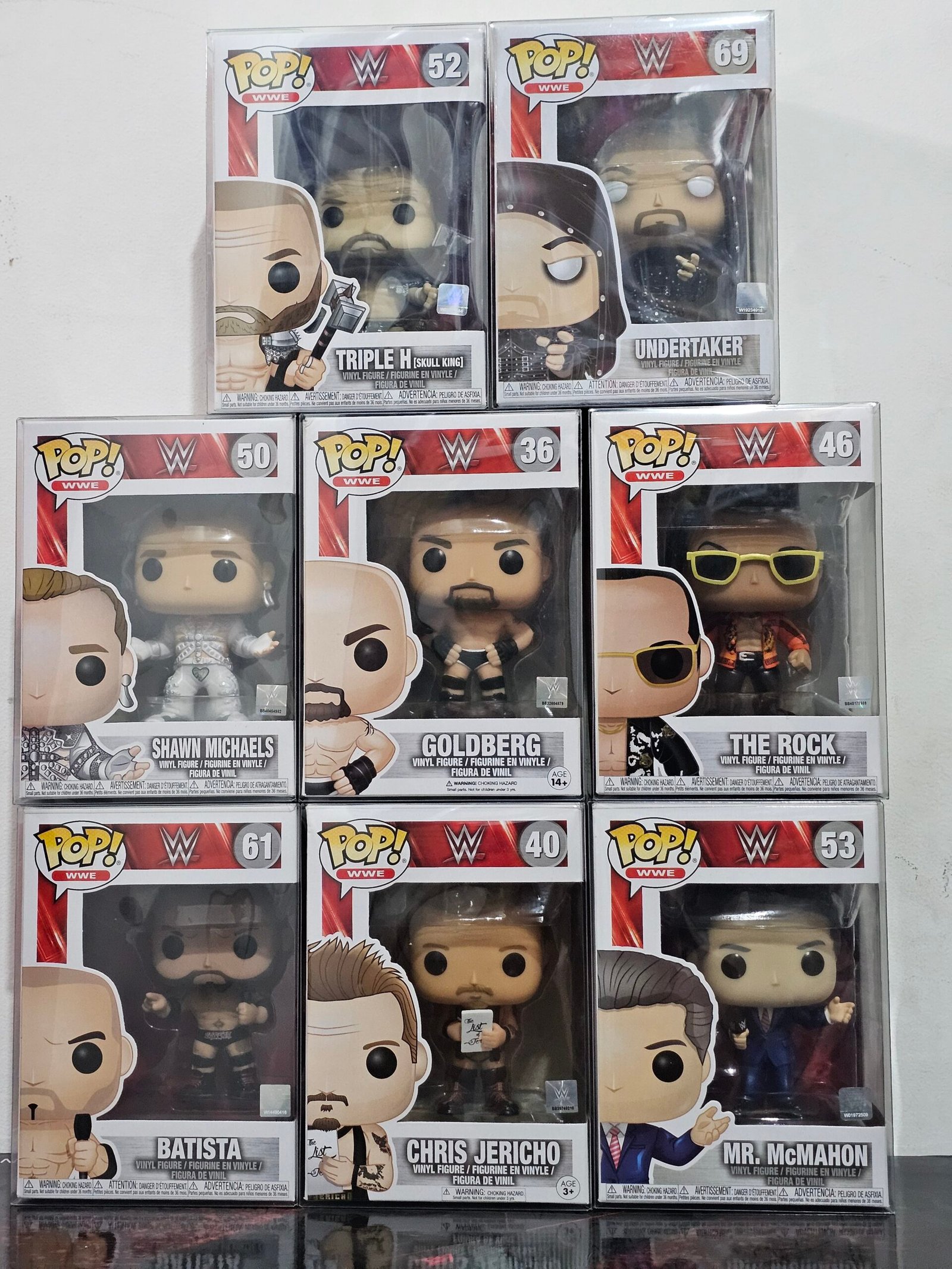 Este exclusivo set incluye figuras Funko Pop de luchadores icónicos de la WWE como Undertaker, Goldberg, Batista, Chris Jericho, Mr. McMahon y más. Ideales para fans y coleccionistas, cada figura viene en su caja original, con detalles auténticos y acabados de alta calidad. ¡Decora tu espacio o aumenta tu colección con estas piezas únicas!